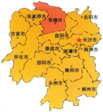 常德,位于湖南省西北部,洞庭湖西岸,史称“川黔咽喉,云贵门户”。 一篇《桃花源记》,让常德拥有了“世外桃源”、“福地洞天”的美誉,常德因此 拥有了一个美丽的名字——桃花源里的城市。 一则“善卷让王”的典故, 使“常德德山山有德”的民谣千古流传,常德因此被誉 为中华民族道德文化发祥地。 一个“刘海砍樵”的传说,把常德“爱神”追求幸福生活、美好爱情的壮举代代颂 扬,常德因此成为一片多情的热土。 今天的常德已成为中国中等城市建设的典范。先后荣获全国文明城市、中国优秀旅 游城市、国家卫生城市、国家园林城市、中国首届魅力城市、国际花园城市、全国交通 管理模范城市、国家环境保护模范城市、中华诗词之市的称号。